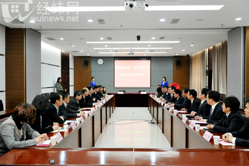 新闻经纬讯 4月15日上午,武汉钢铁(集团)公司与我校战略合作协议签订仪式在学校会议中心104举行,武汉钢铁(集团)公司副总经理、武汉钢铁股份有限公司总经理邹继新,副校长王乾坤,校长助理陈文出席,武汉钢铁股份有限公司、武汉钢铁(集团)公司研究院及学校有关单位负责人参加。