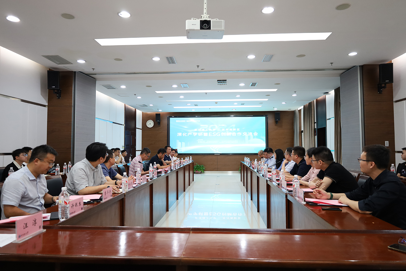 苏州高新区科技成果转化中心科技合作部负责人李立治介绍了苏州高新区在科技成果转化方面的工作情况;学校科技成果转化中心杨彧老师介绍了成果转化工作;材料学科首席教授王欣宇介绍了自己的研发成果;苏州高新产业新城建设发展有限公司负责人介绍了苏州高新股份ESG创新载体相关情况。